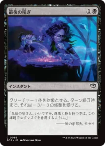クアンドリクスが除去を必要とする状況とは、自慢のサイズをさらに上回る、あるいはサイズで解決できないボムレアが対面に現れた時のみです。であれば、相手のタフネスという「変数」に左右される火力呪文ではなく、どんなサイズも等しく無に帰す黒の確定除去こそが、このデッキの構造的欠陥を埋める「マスターキー」となります。