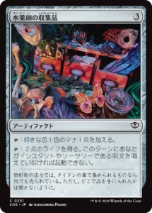 - 《水薬師の収集品》…いわゆるマナリス。好きな色のマナを出せるので、足りない色をなんでも補える。
