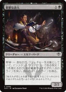 《才気の代償》や《無言の言い渡し》でアドバンテージを取りつつクリーチャーを強化する、テンポ重視のアグロです。《傲慢な墨魔道士》や《墨獣のマスコット》などの軽量アタッカーを主軸に据え、最後は《憂鬱な詩人》の直接火力で詰め切る構造を目指します。