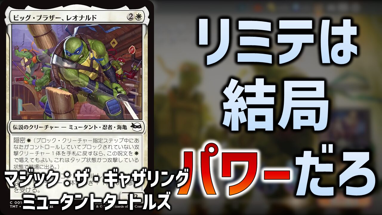 安定してパワー4になるカードはほとんどありません。《東風の守護者》や《小さな孤児の両生種、リタ》は、主軸にするには不安が残ります。《青を纏うリーダー、レオナルド》の全体強化も1ターンきりなので、《青を纏うリーダー、レオナルド》を出す前に他のカードで削っておかなければ、真価を発揮しません。
